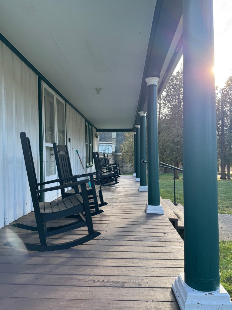 The house is gracious and comfortable. In the past couple of years the furniture has been replaced and there are cozy corners to sit in to read. The kitchen has every single appliance, pot and pan that you could ever want (I brought mostly pre-made food from home for convenience’s sake) and the bedrooms are very comfortable, There are four bathrooms! The porch out front hosts six big rocking chairs that whisper a quiet invitation to rest and ponder.