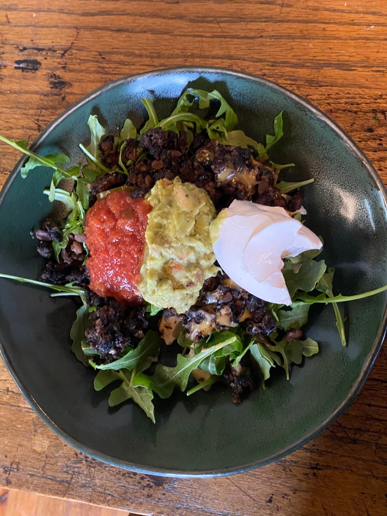 Honestly, this isn’t much different than how we usually eat… or, at least, how I approach cooking. We love ethnic food, I cook most of the week’s dishes on Monday (my day off) and, if we heed the directions on the sticky notes on the refrigerator Tupperware (Quinoa and chick pea stew for Tuesday dinner; tofu salad for sandwiches; vegetable Thai curry and coconut rice for Thursday nite, etc.) then we get to the end of the week well fed and happy. Lunch has always been a conglomeration of whatever dinner leftovers are kicking around and breakfast- well, I’m the only breakfast eater in the house. This week for breakfast I’ve been eating bowls of bran heated with oat milk, almond butter and coconut yogurt, alternated with green smoothies made from kale, plant based protein powder, oat milk and berries all blended into a drinkable green shake.