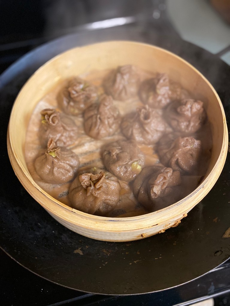 The momos had a great filling- cabbage, carrot, tofu, lots of garlic and ginger… but the dough was heavy. The tomato chutney (tomatoes pan roasted, garlic and cilantro) was delish. It’s always fun to make steamed buns but next time, I’d look for a lighter dough. This one was made with ww flour: